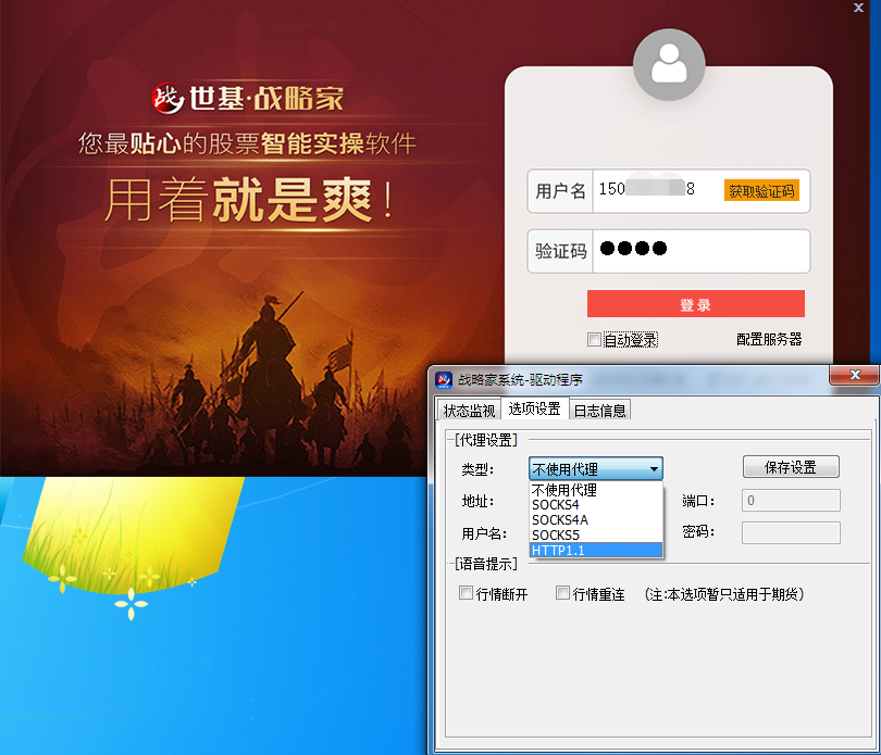 战略家支持socks4、socks4a、socks5、http1.1等多种 代理登录,点击配置服务器即可。